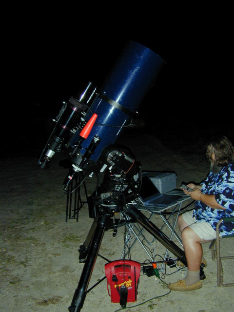 the laser pointer was a puny 5mW unit. Both have since been upgraded. This picture was taken by Jim Mayes in March 2001 at ASPB's Second Annual Spring Equinox Star Party at Nine Mile Grade Campground in Highlands County, Florida. Full screen image Full size image (1280x960) |